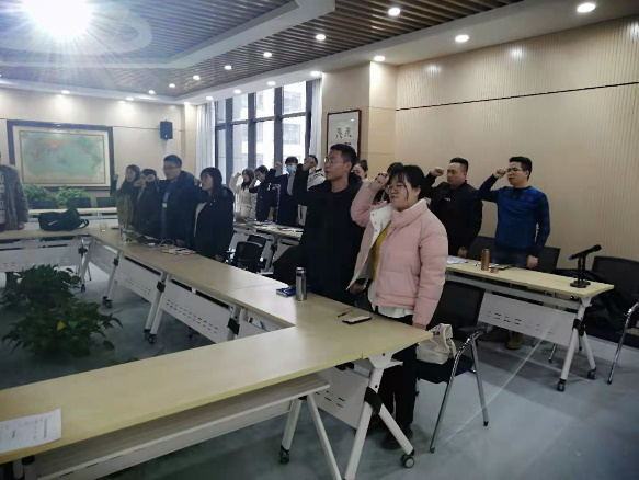 在党支部副书记张凯妮同志的主持下,预备党员赵耀晓和潘程同志分别向党组织提出了按期转正申请。两位党员的联系人也对他们在预备期一年内的工作、学习给予了肯定,同意并推荐这两位同志按期转正。经过匿名投票表决,确定以上两位同志转为正式党员,所有与会人员重温入党誓词。